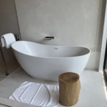 Dieses Mal blieb ich sechs Tage und fünf Nächte. Bei dem Flug handelt es sich um einen Mittagsflug mit einem frühen Rückflug, was einem Verlust von einem Tag entspricht. Bangkok Airlines ist ziemlich gut, startet pünktlich und kommt pünktlich an. Das Hotel liegt ganz in der Nähe des Flughafens, 5 Autominuten entfernt, die Organisation von Transfers ist sehr bequem und sicher. Das Hotelzimmer war ausreichend groß, die Regenwalddusche und die Badewanne waren wirklich schön. Eigentlich wollte ich eine Tagestour organisieren, aber das Hotel bietet kostenlose Aktivitäten, Einrichtungen, Restaurants, Spas und Sonderangebote, also habe ich nichts anderes gespielt. Es gibt einen Feuertanz zu sehen, einen Sänger mit freiem Wein, ein Tanzabendessen mit traditioneller thailändischer Musik und Yoga, einen Ganzkörpertrainingskurs, kurz gesagt, jede Menge Aktivitäten. Es gibt viele Fotopunkte im Schwimmbad und das Frühstück ist reichhaltig. Dieser Ausflug ist schließlich sehr zufriedenstellend. Es gibt keinen Ort, an dem man Dinge kaufen kann. Der Wunsch, Dinge zum Konsumieren zu kaufen, ist nicht so richtig.