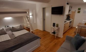 Schöne, kleine Ferienwohnung mit allem, was man braucht. Liebevoll eingerichtet und sehr sauber.Leider war die Familie über uns sehr laut, was teilweise den Schlaf raubte. Ich kann aber nicht sagen ob das Haus grundsätzlich zu hellhörig ist oder wir einfach nur Pech hatten.