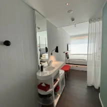 CitizenM ist eine niederländische Hotelkette, und das Design des Hotels hat meine Erwartungen übertroffen. Ich hatte Bewertungen gelesen, in denen die geringe Größe bemängelt wurde, fand sie aber persönlich völlig ausreichend und dem europäischen Hotelstandard entsprechend. Die Zimmeraufteilung war kompakt und logisch, und die Lobby im Erdgeschoss war wunderschön und stilvoll – perfekt, um sich mit Freunden zu treffen. Insgesamt ist es ein sehr junges und modernes Hotel. Der einzige Nachteil ist die Lage an der Harrods Street. Die Harrods Street ist übrigens extrem touristisch; ich würde dort nicht essen gehen – es ist teuer und das Essen ist nicht gut.