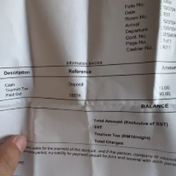 Freunde, die zum Reisen nach Kuala Lumpur kommen, dürfen nicht in diesem Hotel übernachten. Beim Einchecken verlangte die Rezeption eine Kaution und die Kurtaxe von mir. Ich habe das englische Reservierungsformular in Abbildung 1 gezeigt, aber sie haben nur die Anzahlung erhoben. Beim Auschecken wurde mir jedoch die Kurtaxe direkt von der Kaution abgezogen. Ich zeigte noch einmal den Beleg vor, aus dem hervorging, dass ich die Kurtaxe bezahlt hatte, aber an der Rezeption sagte man nur „nein, nein“ und ignorierte mich, obwohl sie das Geld abgezogen hatten. Ich habe während meiner 10-tägigen Reise nach Malaysia die Tourismussteuer bezahlt. Andere Hotels haben mir nicht den gleichen Betrag berechnet, dieses Hotel hat es jedoch genauso gemacht. Reden wir über Hygiene. Schauen Sie sich die Bilder an. Beim Einchecken sah ich, dass die Steppdecke sehr schmutzig war, Rückstände auf dem Boden lagen und auch das Badetuch sehr schmutzig war. Ich bin seit zehn Tagen hier und dies ist das hygienisch schlechteste Hotel! Schlimmste Hotelerfahrung! Dies ist das erste Hotel, das in den zehn Tagen seit meiner Ankunft hier eine Kaution verlangt. Es stellt sich heraus, dass die Kaution erhoben wird, um die Tourismusabgabe doppelt abziehen zu können.