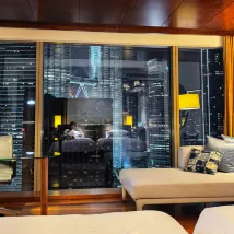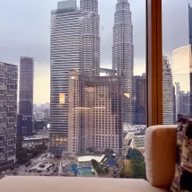 Kein protziger, goldglänzender Prunk, sondern ein klares, elegantes Design. Das absolute Plus ist die Aussicht – durch die raumhohen Fenster blickt man direkt auf die Twin Towers und die Stadt-Skyline. Morgens hier bei einer Tasse Kaffee zu sitzen, ist viel angenehmer, als sich unten im Gedränge aufzuhalten.