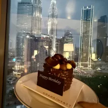Wir sind dann zu Fuß zum KLCC gegangen, um dort zu Mittag zu essen. (Kurze Anmerkung: Das Putien war nicht überfüllt und sehr lecker, obwohl es das auch in China gibt.) Es dauerte nur etwa sechs bis sieben Minuten zu Fuß dorthin, fühlte sich sehr nah an. Danach holten wir die Zimmerkarte ab und bezogen unser Zimmer. Das Deluxe Tower View Zimmer bot von jedem Blickwinkel – vom Schminktisch über Bad und Toilette bis hin zu Bett und Sofa – einen Blick auf den Turm. Die Zimmernummer 09 war die gleiche wie in dem Hotel, in dem wir die zwei Tage zuvor gewohnt hatten – eine tolle Überraschung! Die Lage des Zimmers war weder die höchste noch die niedrigste in dieser Kategorie, was ich sehr gut fand.