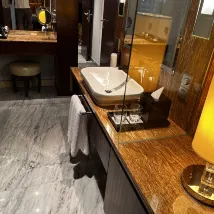 Das gebuchte Standardzimmer war zwar nicht übermäßig groß, aber clever und nicht beengt gestaltet. Die Bettwäsche war eher fest (was mir als Liebhaber harter Matratzen sehr entgegenkam!). Es gab drei Kissen zur Auswahl, sodass man keine Kompromisse eingehen musste. Im Badezimmer kam das warme Wasser schnell und mit perfektem Druck. Die Duschprodukte hatten einen zarten, unaufdringlichen Duft. Ein großes Plus war die „unaufdringliche Aufmerksamkeit“: Wenn ich meine Kleidung vor dem Verlassen des Zimmers achtlos auf das Sofa legte, fand ich sie bei meiner Rückkehr ordentlich gefaltet vor.