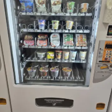 Es gab drei Automaten. Der mit den Instantnudeln war kaputt. Die Rezeptionistin weigerte sich sehr, ihre Kollegin zu bitten, ihn wieder in Gang zu bringen.