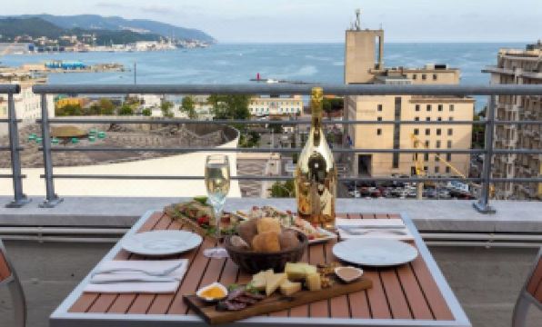 Отель на холме с террасой на последнем этаже и видом на бухту. От ж/д вокзала полчаса пешком. До моря 5 минут спуститься по лестнице. В отеле чисто, тихо, есть отопление (начало марта). Завтрак - омлет, бекон жареный - но не добавляют, кто поздно пришёл, тот не успел. Оладьи, круассаны, различные пироги, кофе, молоко, фрукты, йогурты. Розеток достаточно, душ норм, мыло, шампунь в дозаторах, сейф, холодильник. Приветливый ресепшен.