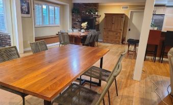 The dining room features 2 large dining tables that seat 12. Game room features 2 queen sleeper sofa beds and a 16 foot indoor shuffleboard table. Note: it states that 2 queen beds are in the living room - they are actually in the game room - see photos.