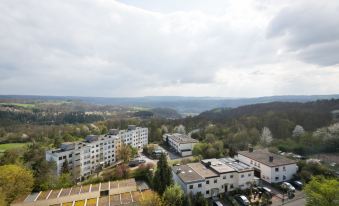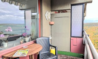 Lahnstein 12 km von Koblenz: Appartementhaus "Ferienpark Rhein-Lahn". Im Ortsteil Lahnstein auf der Höhe, 4 km vom Zentrum von Lahnstein, 12 km vom Zentrum von Koblenz, 4 km vom Fluss. Zur Mitbenutzung: Hallenbad (11 x 6 m, 120 cm tief) mit Innentreppe. Dusche/WC im Poolbereich. In der Anlage: Empfang, Wireless LAN, Sauna (extra). Tischtennis, Fahrstuhl, Zentralheizung, Waschmaschine, Wäschetrockner (zur Mitbenutzung, extra). Parkplatz beim Haus. E-Ladestation. Lebensmittelgeschäft 200 m, Supermarkt 4.5 km, Restaurant 800 m, Bäckerei 4.5 km, Fahrradverleih 4.5 km, Zentrum zu Fuss in 45 Minuten erreichbar, Bushaltestelle "Kurklinik" 200 m, Bahnstation "Koblenz (HBF)" 12 km, Park "Kurpark" 200 m, Freibad 1.5 km, Hallenbad 5 km, Thermalbad "Emser Therme" 10 km. Golfplatz (18 Loch) 16 km, Tennis 500 m, Minigolf 6 km, Wanderwege ab Haus 100 m, Radweg 4.5 km, Kinderspielplatz 100 m. Nahe gelegene Sehenswürdigkeiten: Burg Lahneck 3 km, Marksburg 7 km, Deutsches Eck Koblenz / Seilbahn 10 km, Schloss Stolzenfels 13 km. Wandergebiete: Lahn-Höhenweg 100 m, Rheinsteig (11) 100 m, Jakobswege Rhein-Lahn. Bitte beachten: Fahrzeug empfohlen. Lahn 4 km. Schiffsfahrten (KD) auf dem Rhein 4.5 km. Mosel 10 km. Kleiner Kiosk mit kleinem Tiergehege 300 m entfernt. Der Ferienpark Rhein-Lahn liegt 200 m über der Stadt Lahnstein, mitten im 530 km2 grossen Naturpark Nassau und besteht aus zwei miteinander verbundenen Appartementhäusern sowie eigenem Interhome-Service-Büro. Das Rauchen auf den Balkonen der Wohnungen ist erlaubt. E-Ladestation ist auf dem Parkplatz zu finden, 11 kw. Nutzung und Abrechnung über Interhome Service Büro.