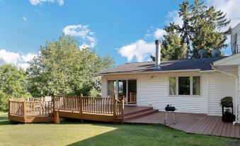 Brentwood is the perfect get away for a family or group of friends for a Wisconsin Dells Vacation located directly across from the Outlets at the Dells Mall. This 4 bedroom (King Bed, 2 Queens, 4 Twin & Sleeper Sofa) , 3 bath 2-level farm-style home is equipped with all your needs including a fully equipped kitchen with stove, refrigerator, microwave & dishwasher, large dining table with banquet seating, central A/C and heat and washer/dryer. Relax in the family room where you will find a 55″ TV for the games and gas fireplace. There are 4 HD4K TV’s and High Speed WIFI for streaming your favorite shows. Enjoy the large exterior deck or fire up the gas grill for a family cookout. There is also a fire pit for a bonfire. Set on a large grassy lot with plenty of room for kids to play and with free access to all Yogi Bear™ activities and water amenities inside Jellystone Park™ from May to September. Pets are not allowed.About pets:No pets allowed.About checkOut:Check out before 12:00 PM.About children:Children allowed: ages 0-17.About customRules:$1000 Security Deposit Required at Check In..About checkIn:Check in after 4:00 PM.About smoking:Smoking is not permitted.About minBookingAge:Minimum age to rent: 21.About events:No events allowed.