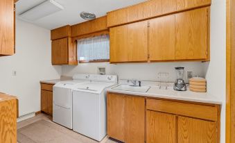 Great location in the Dells! Literally the closest house possible to the outlet mall and tons of restaurants/services, but still on a huge, private lot. We were here in winter so didn't get to use the giant deck, but it would be a great house in the summer as well. The house is huge and can accomodate a LOT of people. This is not a newly updated modern house, but has a nostalgic feel and you can tell that the owners care about it. It was super clean and had every possible amenity you could want, from lots of kitchen utensils/gadgets to several dozen board games, etc. We would definitely recommend it!