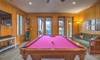 Beautiful LAKEFRONT home. This home boasts a King Suite as well as four spacious gathering decks and room to spread out. Numerous indoor as well as outdoor living areas including a billiard room. Garage has been converted into a rec room with a ping pong table, foosball, giant jinga, and TV. Enormous sun deck atop a 2 stall boathouse. 2 Kayaks and 2 paddle boards (SUP) included with rental. Inquire with owner regarding rental of 20' pontoon. Sonos sound system. 3 king beds, 2 queens, 1 single, 3 roll-away beds, and 2 pack-n-play cribs. Fully stocked kitchen. Weber gas grill and charcoal grill are available for use. Our cove is nestled back from the traffic flow of the main lake allowing a safe space for children to swim away from boat traffic.