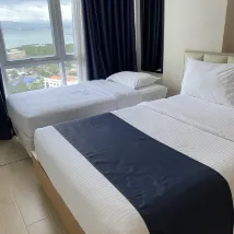 Das Zimmer ist gut und geräumig. Die Lage ist großartig, in der Nähe von Lebensmittelgeschäften, Fastfood und Restaurants. Es befindet sich in MACTAN NEWTOWN. Das Personal ist nett und zuvorkommend. Aber von der Ausstattung bin ich ein wenig enttäuscht. Der Pool wird gerade gewartet ... Das ist wie ein Condotel.