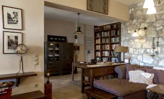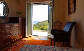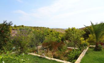 The villa it self, built on a slope, boasts a marvelous view from every one of its three tiers. The main outdoor area is complete with a large patio and dining area, swimming pool and stone barbecue, all surrounded by dense local vegetation ranging from grape vines to fig and pomegranate trees. All of course overlooked by the spacious verandas on every floor.