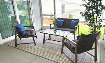 Inside, the dining room comfortably seats four, providing an excellent space for meals and socializing. The living room features cozy seating and a Smart TV for entertainment. The well-equipped kitchen is ready for your culinary creations, complete with bar seating for four. Conveniently, it offers easy access to the washer and dryer.