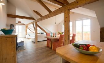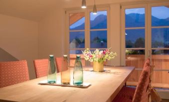 Unsere helle und gemütliche Ferienwohnung mit 3 Schlafzimmern, großem offenem Koch-, Ess- und Wohnbereich sowie Bad und Gästebad liegt im Dorfkern von Lenggries. Sie wohnen absolut zentral und zugleich ganz ruhig, können die Gipfel aller Berge im Süden sowie die grandiosen Sonnenuntergänge über dem Hausberg "Brauneck" von den beiden Balkonen aus genießen. Unser Platzl befindet sich im altehrwürdigen Mesnerhaus. Es ist achtsam und liebevoll ökologisch saniert worden und steht Ihnen heute mit bestem Raumklima für eine erholsame Auszeit bereit. Sie finden alle Einkaufsmöglichkeiten vom Grünen Warenhaus (Biomarkt) über hervorragende Metzgereien und Bäckereien bis zum Lebensmittel-Discounter in fußläufiger Entfernung. Die Haltestelle des Skibusses zum Brauneck sowie der Bahnhof sind zu Fuß in wenigen Minuten erreichbar. Aktive Sportler, Naturliebhaber, Familienurlaube, Retreat, Seelebaumeln in einem der schönsten lebendigen Dörfer.