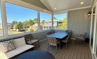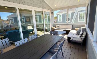 • A 22’ x 12’ screened deck with a full dining table and sitting area, perfect for morning coffee or evening beverages as you unwind from your day on the beach