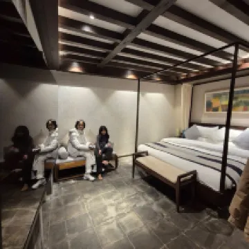 I love this little hotel next to everything, night market , restaurants and coffee/ tea stall. I love Chinese exterior and the amenities. This place offers everything that you need. The room is super cozy with heated floor. The host is super nice and friendly.