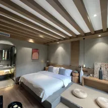 Die Zimmer waren geschmackvoll eingerichtet, schlicht und doch elegant, und spiegelten den ästhetischen Sinn und die Liebe zum Detail des Besitzers wider. Die Holzmöbel und die sanfte Beleuchtung sorgten dafür, dass man sich selbst beim stillen Sitzen sehr wohlfühlte. Die größte Überraschung war das unglaublich bequeme Bett; ich habe wunderbar geschlafen.
