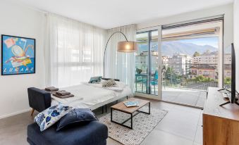 Locarno: Grosse, moderne Residenz "LocTowers", auf 9 Stockwerken, Baujahr 2021. 5 Häuser in der Residenz. Im Ortszentrum von Locarno, zentrale Lage, 600 m vom See, 1.8 km vom Fluss. Im Hause: Fahrstuhl, Zentralheizung. Wohnungsreinigung möglich (extra). Gemeinschaftsgarage (extra) beim Haus. Maße: Höhe 210 cm Breite 275 cm. Supermarkt 50 m, Restaurant 200 m, Fußgängerzone 400 m, Bushaltestelle "Locarno, Alle Torri" 80 m, Bahnstation "Locarno SBB-CFF" 1.3 km, Freibad 1.1 km, Hallenbad 1.1 km, See Lago Maggiore 650 m. Golfplatz (9 Loch) 1.2 km, Tennis 650 m, Minigolf 350 m, Luftseilbahn 3.9 km, Kinderspielplatz 400 m. Nahe gelegene Sehenswürdigkeiten: Falconeria Locarno, Swissminiatur, Melide, Outlet Foxtown, Mendrisio, Madonna del Sasso, Orselina, Madonna del Sasso / Cardada, Castelli di Bellinzona. Bekannte Skigebiete sind gut erreichbar: Bosco Gurin. Bekannte Seen in der Umgebung sind gut erreichbar: Lago Maggiore, Lago di Lugano, Lago di Orta (IT). Wandergebiete: Valle Verzasca, Valle Maggia, Valle Onsernone, Centovalli. Bitte beachten: Das Foto ist nur ein Wohnungsbeispiel. Weitere Unterkünfte sind buchbar. Ferienwohnung Ref. CH6600.60 befindet sich auf dem gleichen Grundstück.