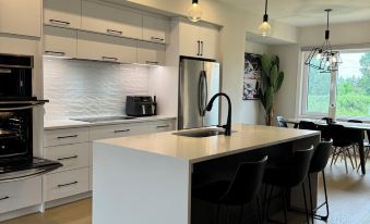 Amazing house on 3 levels. I really appreciated the open room and the natural light of the living/kitchen. Kitchen is functional with induction cooktop with a good hood. Lights everywhete even though some controls were hidden. Not far from grocery stores, Canadian Tire malls and restaurants