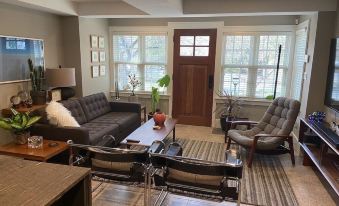 The apartment is self contained with a large bedroom with king size bed, full bathroom with large shower, European style kitchen with all appliances, granite counters, eating bar and is fully equipped. Open concept living space with Large TV’s in both bedroom and main living space with Netflix, Cable TV, and Wireless Wifi. The apartment has in-floor heating and air conditioning. Designed with a mid century modern feel, it is a very welcoming and calm space. We have two Old English Sheepdogs who romp the property and will become friends at first site. Parking is available for 2 cars. Welcome to 606!About pets:No pets allowed.About checkOut:Check out before 11:00 AM.About children:Children allowed: ages 0-17.About checkIn:Check in after 4:00 PM.About smoking:Smoking is not permitted.About minBookingAge:Minimum age to rent: 25.About events:No events allowed.