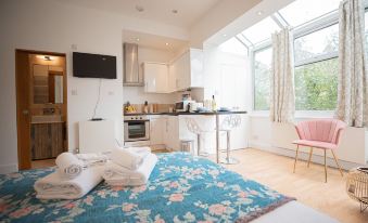 Great restaurants/bars and cafes are just stones throw from the apartment. This studio apartment is on the ground floor in a Victorian building that offers you great couple feelings.