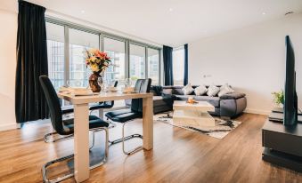 A luxury state-of-the-art apartment nestled in the heart of Central London where timeless elegance meets modern sophistication. A 5-min stroll to Aldgate East, enjoy swift commutes to Tower Bridge, Spitalfields, Liverpool Street, Shoreditch and the City. This beautifully furnished retreat offers the comfort, style, and convenience that redefines the epitome of city living. A stay here isn't just central — it's quintessentially London baby!