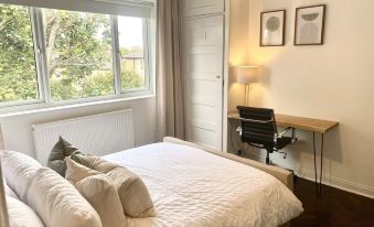 Both bedrooms offer generous space, ensuring you have ample room to unwind and relax. One of the rooms comes equipped with a small desk, providing a perfect spot for work or study if needed.
