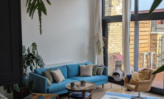 A beautiful, bright and comfortable flat with high ceilings by the canal, meters away from Hackney Wick station, featuring a comfortable and solid double bed and a sofabed. The flat is fully equipped with all necessities and accessories for short and long stays.