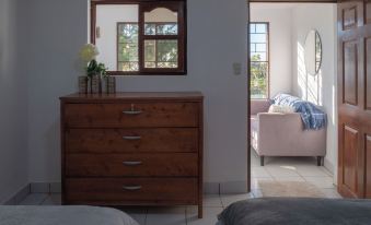 Our space has three rooms; two of them have 2 queen beds, and the other has two single beds. The cottage can accommodate up to 6 people. We have a cute bathroom with a shower. The kitchenette is open concept and is equipped with all the basics. Salt, pepper, will be available. Additionally, the kitchenette also has a coffee cart that has the best locally sourced coffee.
