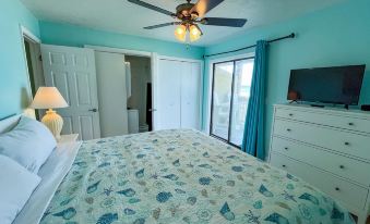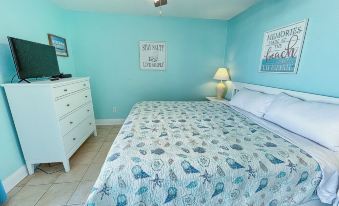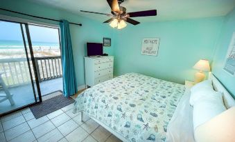 The condo has a King size bed in the bedroom, a kitchen with the essentials, and the living room includes a hide-a-bed couch that can sleep 2 additional guests. There are televisions in the Living room and bedroom with basic cable. Both are Roku Tvs with guest mode so you can stream your apps. The unit includes a washer and dryer. The deck has seating to enjoy the view of the gulf and incredible sunsets. Wireless internet is also included so feel free to stream your favorite shows and movies.