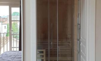Camera molto bella, divisa in due stanze con letti matrimoniali Pulizia, cortesia e ambiente molto bello pulito e accogliente Il titolare molto simpatico e alla mano, offertosi vista la non prontezza della camera di portarci i bagagli in camera Se devo trovare un piccolo neo la porta a scomparsa era bloccata senza possibilità di poterla utilizzare Super consigliato