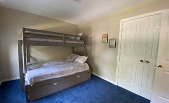We thoroughly enjoyed this two bedroom two bathroom condo. It sits directly across from the A-Quad chairlift about 1/3 way up Okemo ski resort. Easy access to the Sunburst 6 covered chairlift if you ski down mountain a short bit. Sunburst 6 takes you to so many great trails. The condo is fully equipped including most all the kitchen items a family could ask for. Master bedroom has a queen listed as the bed within but it seemed tight for a queen. A king bed would likely fit fine and would make this a complete 10 for me. But other than that I couldn’t really say anything negative about the place. Owners are a delight and they provide an excellent experience and location