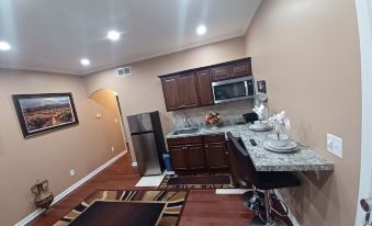 a large private bathroom, fabulous designer kitchen with counter tops, brand new stainless appliances, living room area has a nice big sofa and 55, inch TV to watch some shows via Roku, Netflix, and WIFI accessible, and parking on premises.About pets:No pets allowed, service animals permitted.About checkOut:Check out before 11:00 AM.About children:Adults only.About checkIn:Check in after 4:00 PM.About smoking:Smoking is not permitted.About minBookingAge:Minimum age to rent: 18.About events:No events allowed.