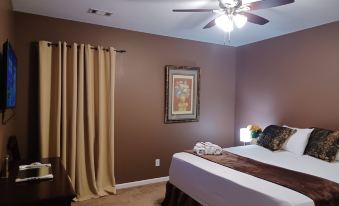 This suite contains a full large master suite with a king-sized bed with 40, inch TV,