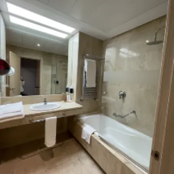 I enjoyed the hotel so far and the staff was friendly and helpful. Nice bathtub, big room, very clean and all amenities. However the walls were a bit thin and some inconsiderate guests made a lot of noise for a couple nights making it difficult to sleep sound.