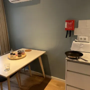 Das Zimmer eignet sich sehr gut für einen Kurzaufenthalt und verfügt über eine Waschmaschine, einen Induktionsherd und einen Kühlschrank. Es ist nur so, dass die Bettwäsche aus einer Schicht besteht.