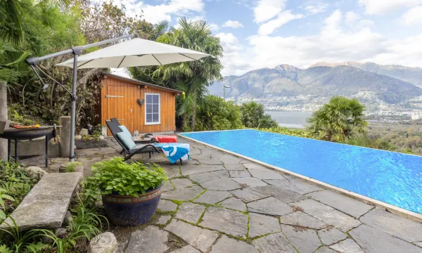 Magadino 15 km von Locarno: Sehr schönes, komfortables Einfamilienhaus "Villetta Felice mit Pool", 230 m.ü.M., auf 2 Stockwerken, Baujahr 1965, renoviert im Jahre 2023. Oberhalb von Magadino, ruhige, sonnige, erhöhte Lage, Richtung Nordwesten. Zur Alleinbenutzung: grosser, schöner Garten 200 m2 (eingezäunt), Schwimmbad eckig (7 x 3 m, 150 cm tief, saisonale Verfügbarkeit: 01.Mai. - 15.Okt.) mit Rollladenabdeckung und Salzelektrolyse-Reinigungssystem. Aussendusche. Im Hause: Zentralheizung. Treppenweg (6 Stufen) bis zum Haus. Lebensmittelgeschäft 800 m, Supermarkt 6 km, Restaurant 800 m, Bushaltestelle "Orgnana, Monda" 80 m, Bahnstation "Bellinzona" 19 km. Sporthafen 1.5 km, Golfplatz (18 Loch) 19 km, Minigolf 2.2 km, Wanderwege ab Haus 10 m. Nahe gelegene Sehenswürdigkeiten: Mercato Luino IT, Parco botanico del Gambarogno, Castelli di Bellinzona. Bekannte Seen in der Umgebung sind gut erreichbar: Lago Maggiore. Wandergebiete: Bolle di Magadino, Valle Verzasca, Vallemaggia. Der Besitzer akzeptiert keine Jugendgruppen. Gartenhaus bleibt verschlossen da sich dort die Pooltechnik befindet, Kontrolle 1x monatlich durch den Pooltechniker der die Werte nimmt.
