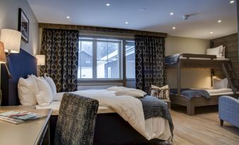 We travel a lot and this was one of our best accomodation experiences! The mountain lodge decor and cozy size of only 50 rooms was the perfect balance of convience without over crowding. I was a bit hesitant reserving because all other accomodations seemed managed by SkiStar. This turned out to be no inconvience at all. The entire staff was incredibly freindly and the location was perfect. There are a few restautant and ski shop choices, ice skating, and ski lifts right outside the front door. There is a bus stop at the Concept Store in front of the hotel, but the bus timing was unreliable after 35cm dump of snow overnight. Ski storage lockers were also provided to save valuable room space. The family room with loft was brilliant but it would have been nice to have a bit mroe space. The restuarant was fantastic. Breakfast was way more than the typical European meat and cheese. It met American standards of satisfaction with waffle maker, eggs and bacon.