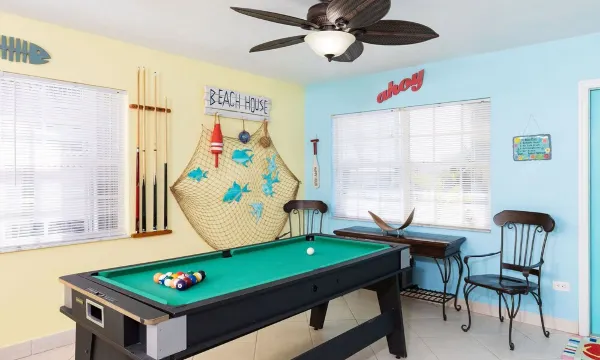 You'll enjoy our colorful house, with our beautiful heated pool with a huge 7 ft JACUZZI for your relaxation and comfort and our nice TIKI HUT with a picnic table and its own TV. The house has all new furniture and central A/C. We provide towels, and linens. We have a stainless steel BBQ, twin burners fryer for outdoor cooking. Our home has Premium cable TV Service, DVD's, High speed WIFI Wireless Internet, a 65' Flat Screen HDTV in the living room, plus each bedroom has it own TV/DVD. The master bedroom has a king size bed, the 2nd bedroom has a queen size bed and the 3rd bedroom has two twin beds and is a sofa bed on the living room. We have a full kitchen with new appliances, microwave, plates, pots, pans, toaster, coffemaker, blender and utensils for your convinience.