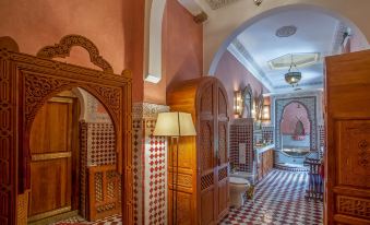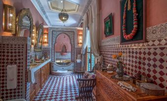 Spectacular beautiful Riad. The Riad was a museum of items of art and culture. We were fortunate to have booked a suite which was an absolute delight. The ambience and calm of the Riad is created by the place, the people working who made us feel more like family and the birds and tortoise's created the background. All was as described on the description, with a traditional breakfast being served in the beautiful jasmine and bougainvillea lined walls. Room cleaned every day. Hot and cold soft drinks available on request. Towls available poolside. WiFi throughout including terraces. Special mention to the host staff Mohammad and Simone who with notice arrange your hearts desire which for us was a tajine cooking lesson which was an absolute delight. The Riad roof terraces were a favourite haunt especially for the sunrise and sunset with 360 views across the roofs to the mountains that seem to surround the Medina. Truly magical. The location was near enough to the main soukes and squares but far enough to enjoy the peace within the riad. The greatest thing by far was the happiness and laughter from the staff as they went along there day's work which was for Mohammed who seemed to be available 24/7 and always with a smile. Youseff who was so gracious and polite. Would highly recommend asking for the hotel to arrange airport transfer, once at riad a city map is provided with direct routes marked and other tips for your stay. Peaceful and well located allowing you to gain a real insight to Marrakech life as you wander around this amazing Medina.