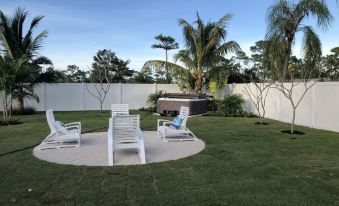 Our family of five with three adult children had a comfortable relaxing week at this well appointed property. The house has everything we wanted or needed to cook nice meals and enjoy an afternoon of fun in the sun and has a good location a short drive from beaches, restaurants, stores and activities. The backyard with pool, hot tub, loungers and tiki bar was exceptional. Having beach chairs and boogie boards was great. We will be back, thank you.