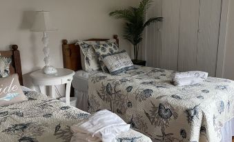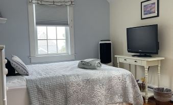 My husband and I stayed here for a wedding at the Popponesset Inn Labor Day weekend. The location is perfect with a short walk to the beach. You do have to go down a full flight of stairs to the beach which was fine for us. This is a 2 bedroom but the upstairs bedroom does not have a door. That may be a problem for those who want more privacy. It was fine for us but we would have not liked having other people with us. The cottage is cozy and clean but I did feel like the quilts on the bed were not fresh. It would have been a lot nicer if we had a nice white duvet with crisp white linens. The bed was adequate but could use a new mattress the towels were the biggest disappointment. They were thin and mismatched. We did find a couple that were a little thinner folded under the sink. I would stay here again but this nice rental could be great with a few simple upgrades. We didn’t use the beach chairs but they looked very worn. The cutlery was also all mismatched and we couldn’t find a teaspoon. Thankfully there was a small box of plastic teaspoons in the drawer. Another nightstand on the other side of the bed would also be great. Again minor upgrades needed but all in all a lovely stay.