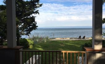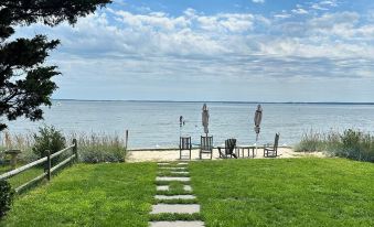 Bayfront three bedroom cottage just steps from the water, with panoramic views of the Peconic Bay. The property sleeps six and has a beautiful outdoor living space for guests to enjoy. Swimming, kayak and paddle board on your very own beach, or walk to a town beach with lifeguard supervision. The house is equipped with central air, hardwood floors and washer/dryer, and towels.