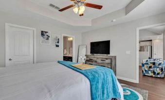 House includes all amenities of home including a fully stocked kitchen, keuig coffee maker, blender, toaster, work space, washer/dryer, smart tv's in all bedrooms and living room, free wifi, towels, shower gel, shampoo/conditioner and adjustable thermostat.
