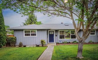 This beautifully remodeled home is fully furnished and simply yet tastefully decorated to make you feel right at home. The gardens are peaceful and private, with no street noise thanks to high-quality custom double-paned windows with blackout film that not only block harmful UV rays but also make the house noticeably quiet. You’ll enjoy natural light and stunning views while knowing you have complete privacy. From the house, you can admire gorgeous mountain tops and soak in the beauty of Southern Oregon.