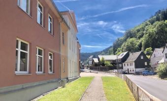 Zu den Attraktionen in der Nähe von Vacation apartment Alte Schule Friedrich Fröbel gehört Schwimmbad Mellenbach-Glasbach (nur 690 m von deinem Suchort entfernt (Luftlinie)).Welche Sehenswürdigkeiten befinden sich in der Nähe von Vacation apartment Alte Schule Friedrich Fröbel?