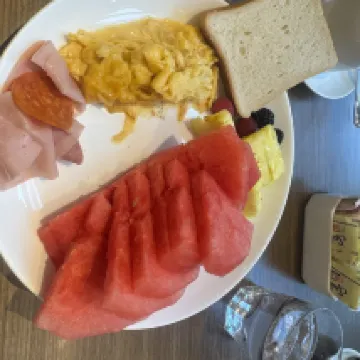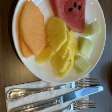Das Frühstück hat mir sehr gut gefallen. Man kann kostenlos heißen Tee bestellen und es gibt eine große Auswahl an Obst.
