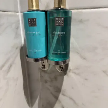 Ich hatte meine eigene Zahnbürste dabei, aber es gibt auch eine im Zimmer. Das Zimmer war sauber und hatte ein besonders großes Sofa, sodass es für eine dreiköpfige Familie ausreichend Platz bietet.