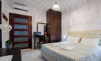 The residence is spread over 2 levels and consists of 4 brand new apartments. All four apartments are 50m² in size with a separate entrance, located just below our family home and close to our furniture company. The interior is decorated in a modern international style. Each apartment has 1 bedroom with 1 double bed, a fully equipped kitchen, a bathroom and a living room with a sofa bed (1 single bed). Each residence can accommodate 1 to 3 people. They have a hairdryer, Wi-Fi, A/C, private parking, first aid kit and a safe. They also have a shared swimming pool, garden and all three have balconies overlooking the sea, which is almost 150m from our facilities.