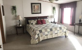 Very nice home includes a large kitchen/dining area with a breakfast nook. Large living room with a wood burning stove. We offer free Wi-Fi and there is a 50” Smart TV with Firestick. Three spacious bedrooms that will sleep 8 comfortably with room for setting up the portable queen size bed for added sleeping. Each bedroom has a digital clock with a USB port and charging station for docking your cell phone. Laundry room is well stocked for use during your stay. There is a large, beautiful deck for warm weather enjoyment. A Gas Grill and a Fire Pit for your enjoyment. There is a 2 acre lake for fishing (and you are allowed to keep whatever you catch), swimming & kayaking! No fireworks are allowed. No Smoking or Vaping allowed in the home ($250 fine if it happens) you can do so outside.